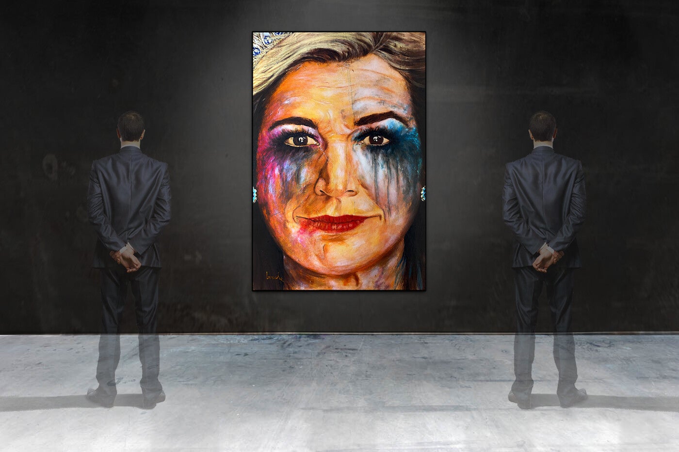 Everyone has a dark side. Even people who are expected to act decent on a daily basis. With this painting I've tried to show the dark side behind the decent mask.